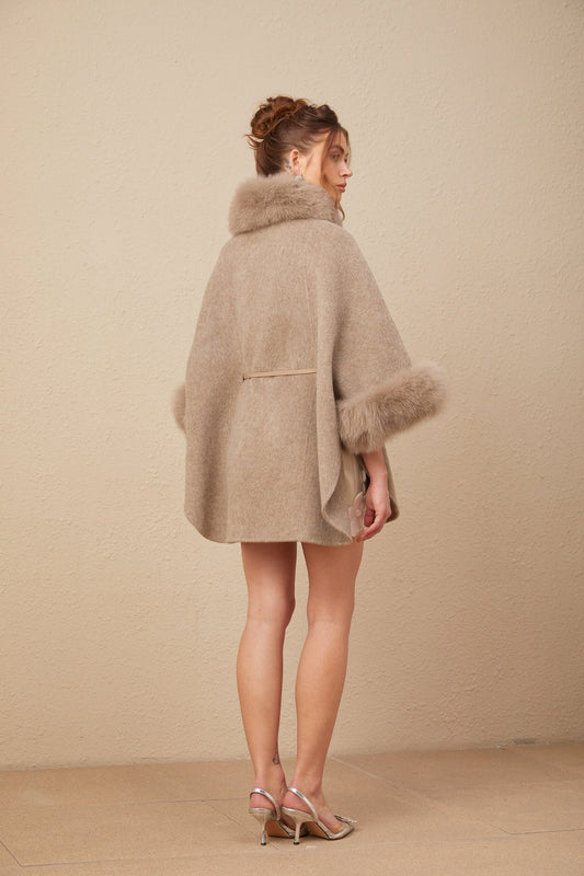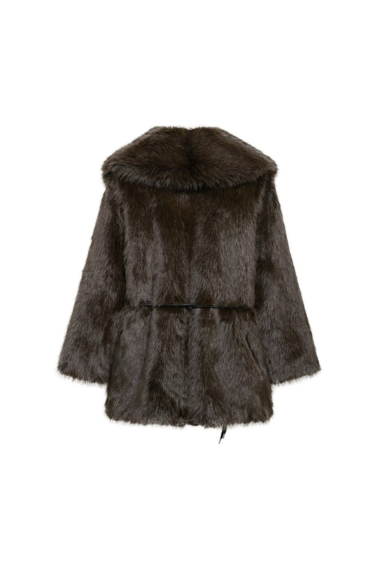 58% İndirimChloris Yünlü Kürk Kuşaklı Kapüşonlu Kaban