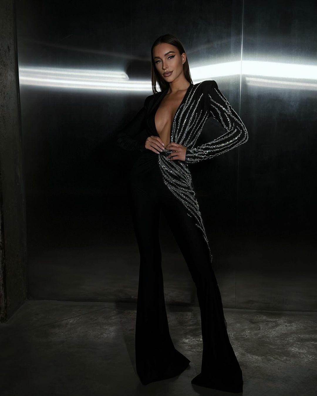 Modern ihtişamı yansıtan Arabella Özel Seri Payetli Tulum, göz alıcı payet kumaşı ve iddialı derin V yaka kesimiyle dikkat çeker....