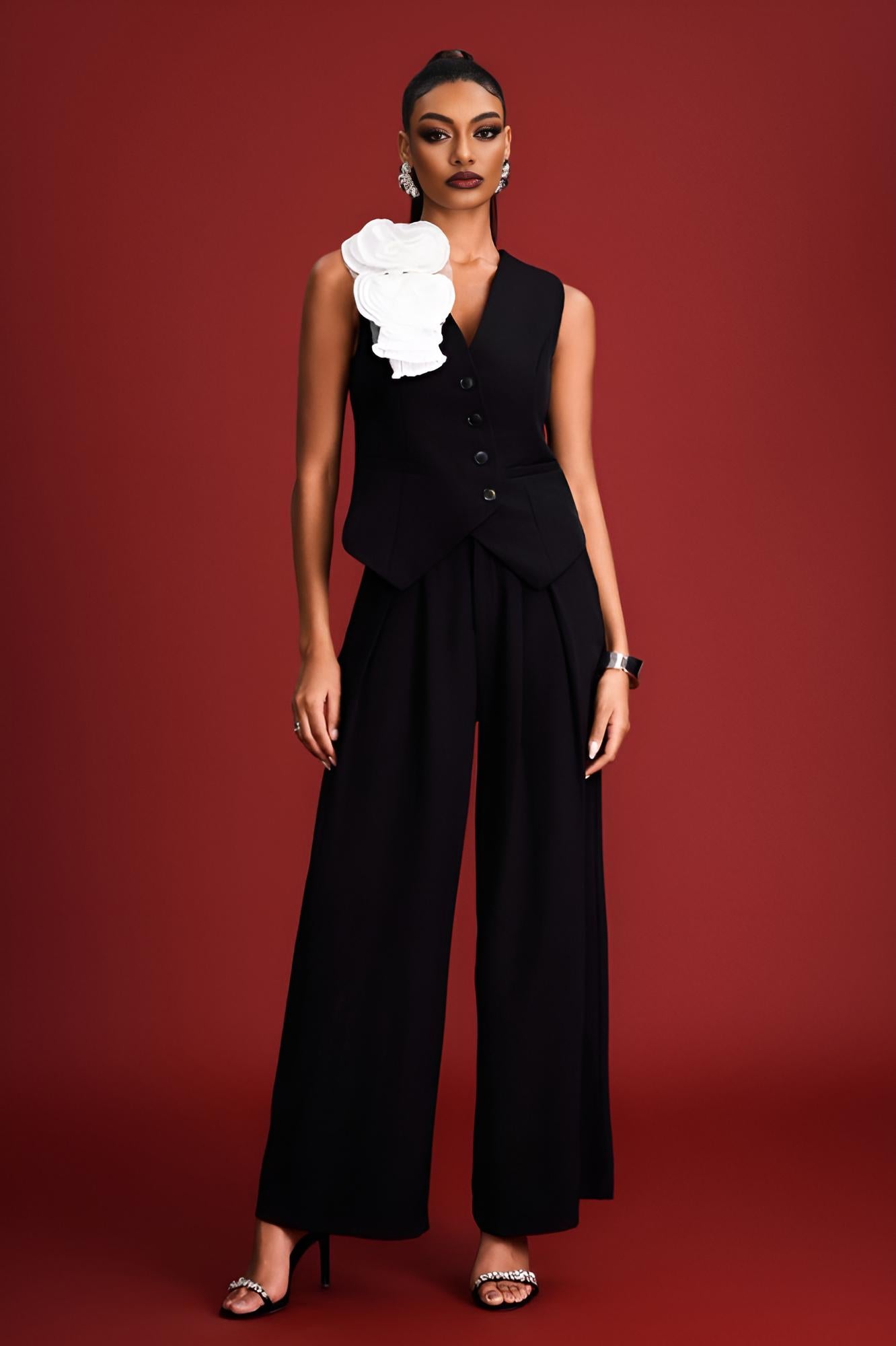 Modern çizgileriyle öne çıkan Ebony Çiçek Yelek Takım, siyah renkteki kusursuz dikimli tasarımıyla zarafeti yansıtır. Omuz kısmında yer alan beyaz...