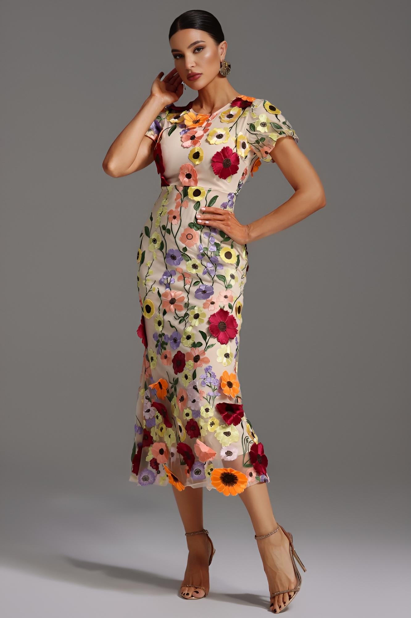Romantik ve zarif tasarımıyla öne çıkan bu midi elbise, canlı 3D çiçek işlemeleri ile süslenmiştir. Çiçek açan bir bahçenin tüm... Devamını oku