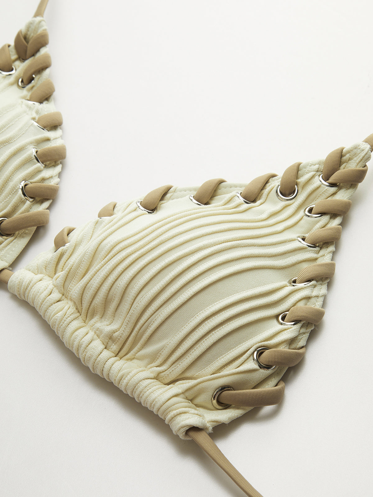 Grommet Bağcıklı Dokulu Bikini Takımı
