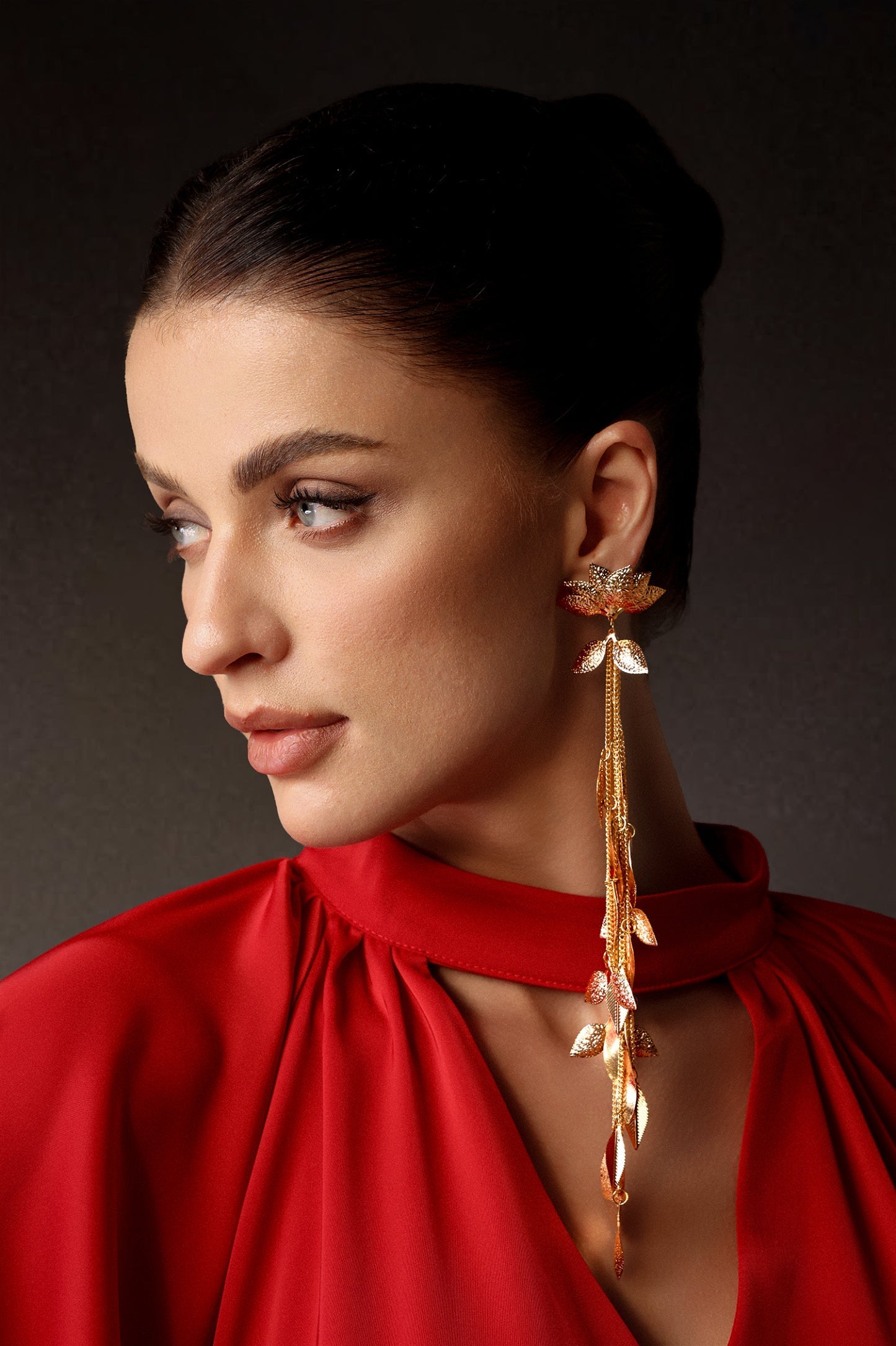 Hollie Asimetrik Metal Çiçekli Püsküllü Küpeler, özel davetleriniz ve özel günleriniz için zarif bir seçenektir. Her biri el emeği ile...