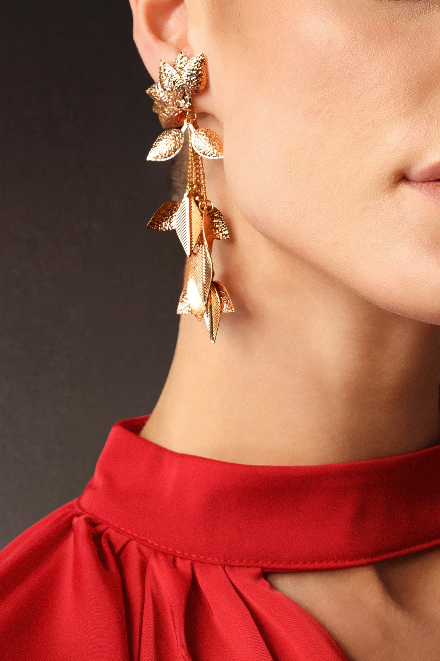 Hollie Asimetrik Metal Çiçekli Püsküllü Küpeler