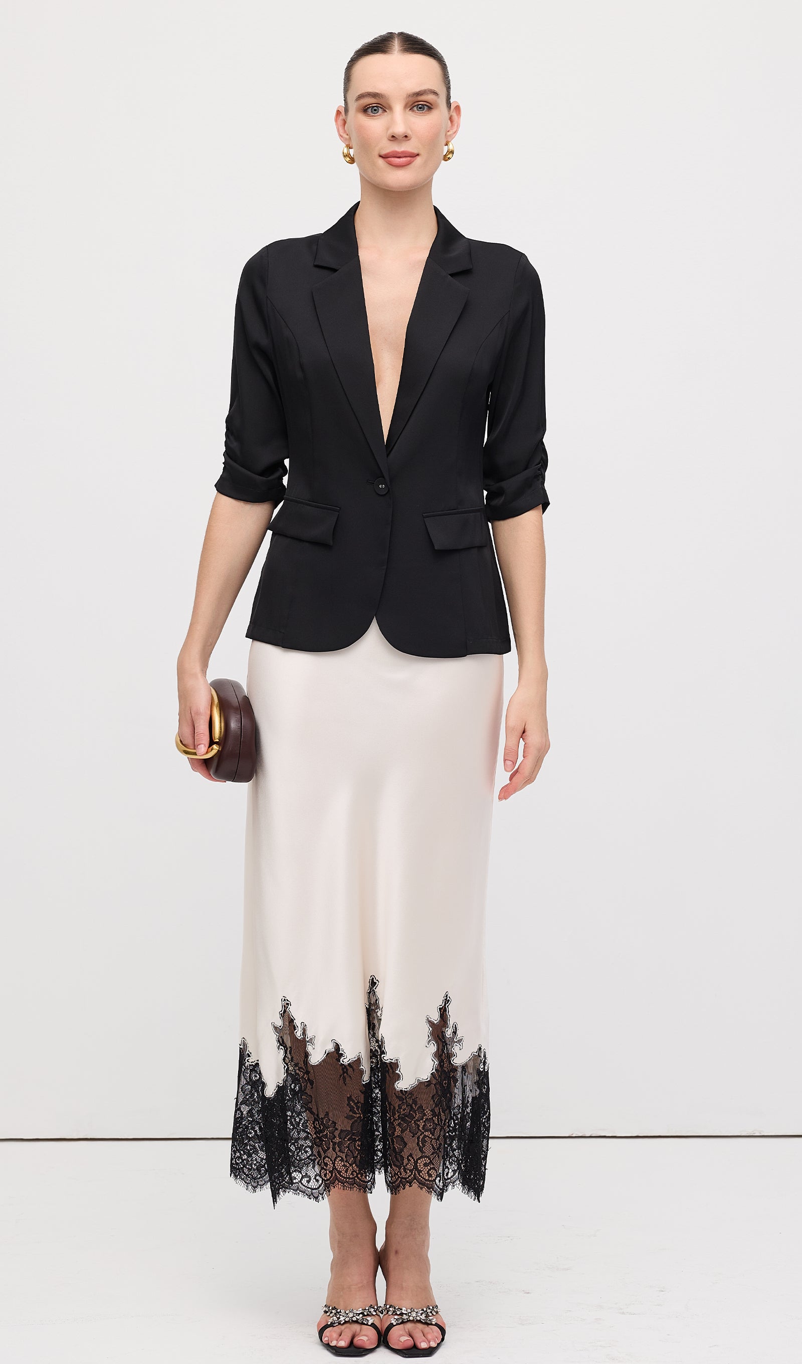 Malzeme: Etek: %97 Viskon, %3 Elastan Dantel: %65 Poliamid, %20 Polyester, %15 Elastan Gardırobunuza zarafet katacak Dantel Saten Midi Etek...