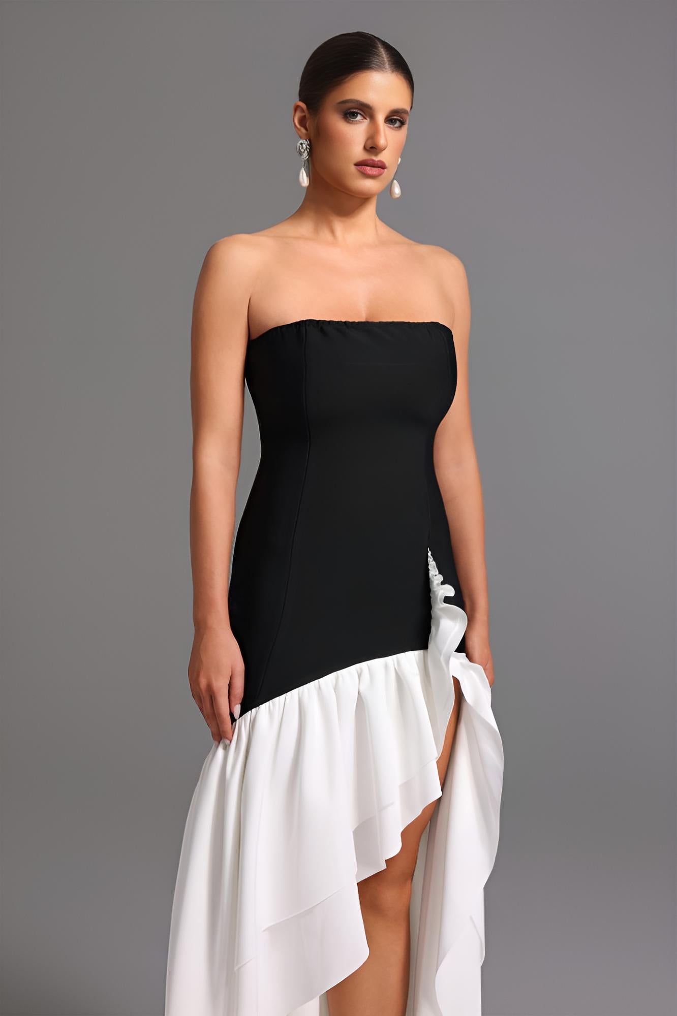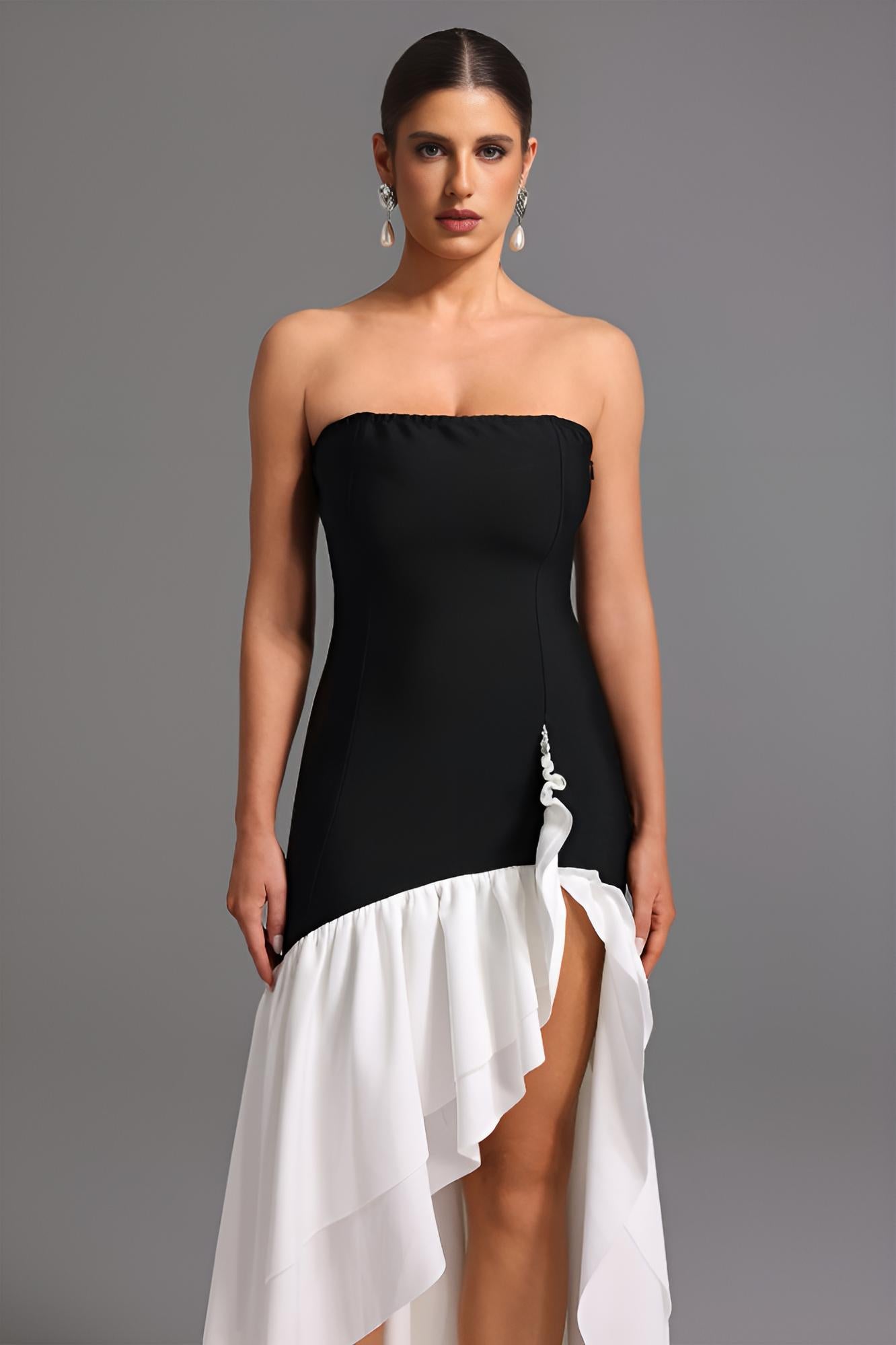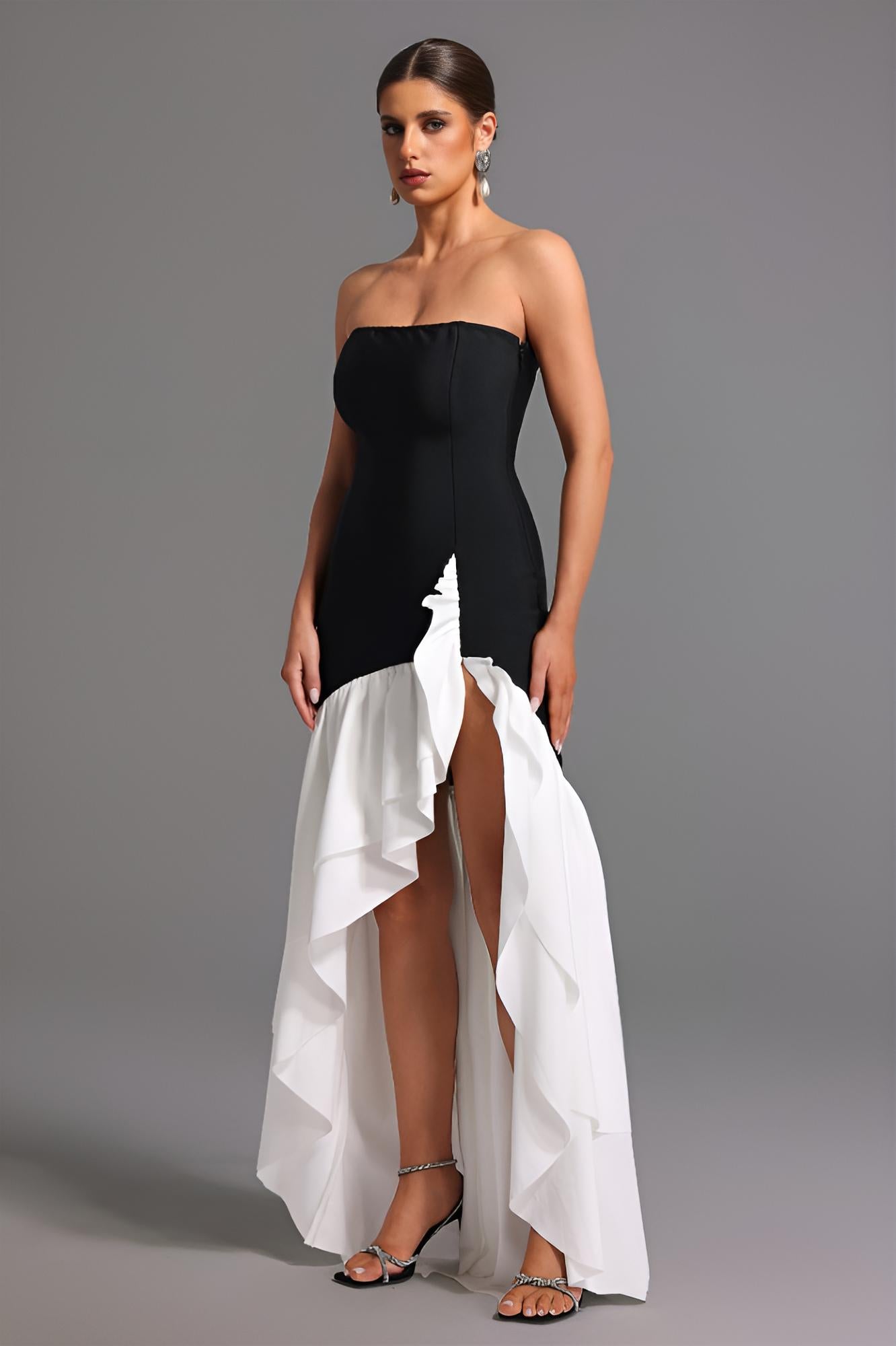 Lesley Straplez Yüksek Yırtmaçlı Midi Elbise