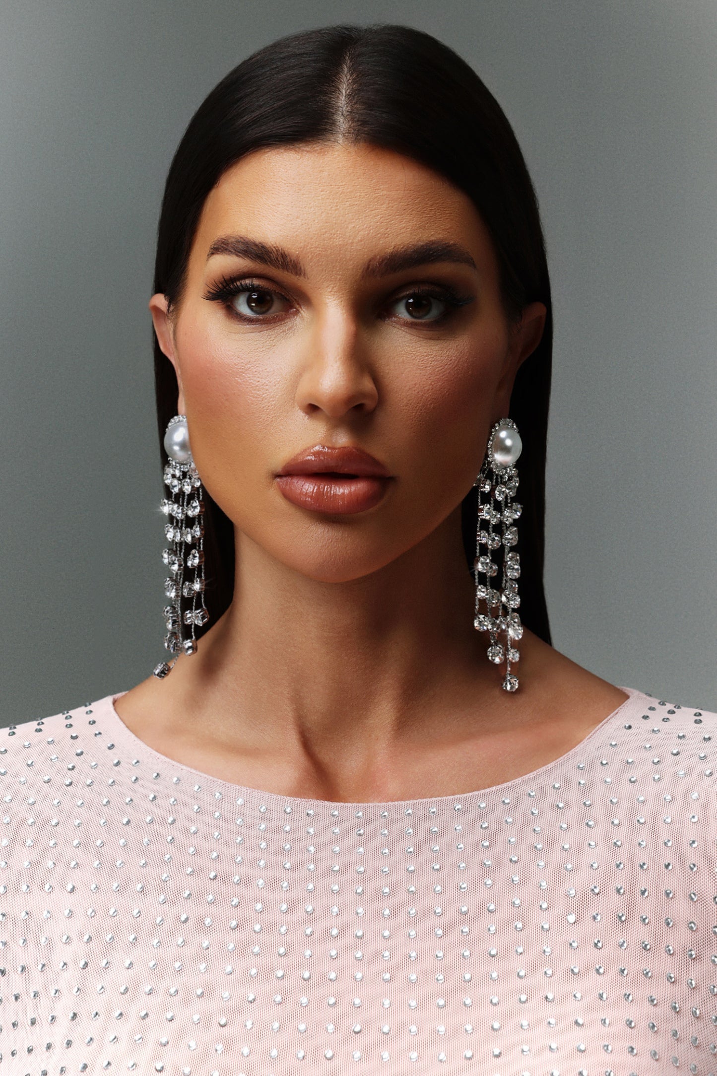 Lizbet İnci ve Taş Detaylı Püsküllü Küpeler