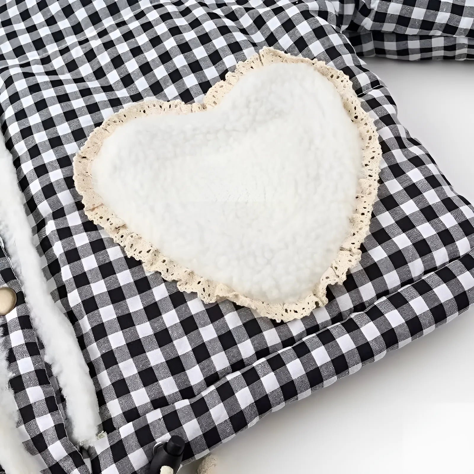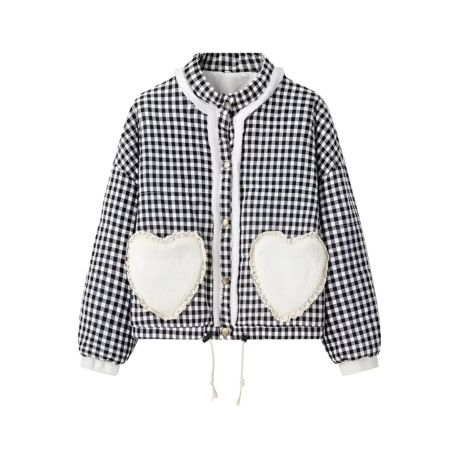 Siyah Beyaz Kalp Ceket Siyah beyaz ekose desenli bu ceket, yumuşak kalp detayları ve zarif dantel süslemeleriyle stilinizi bir adım... Devamını oku