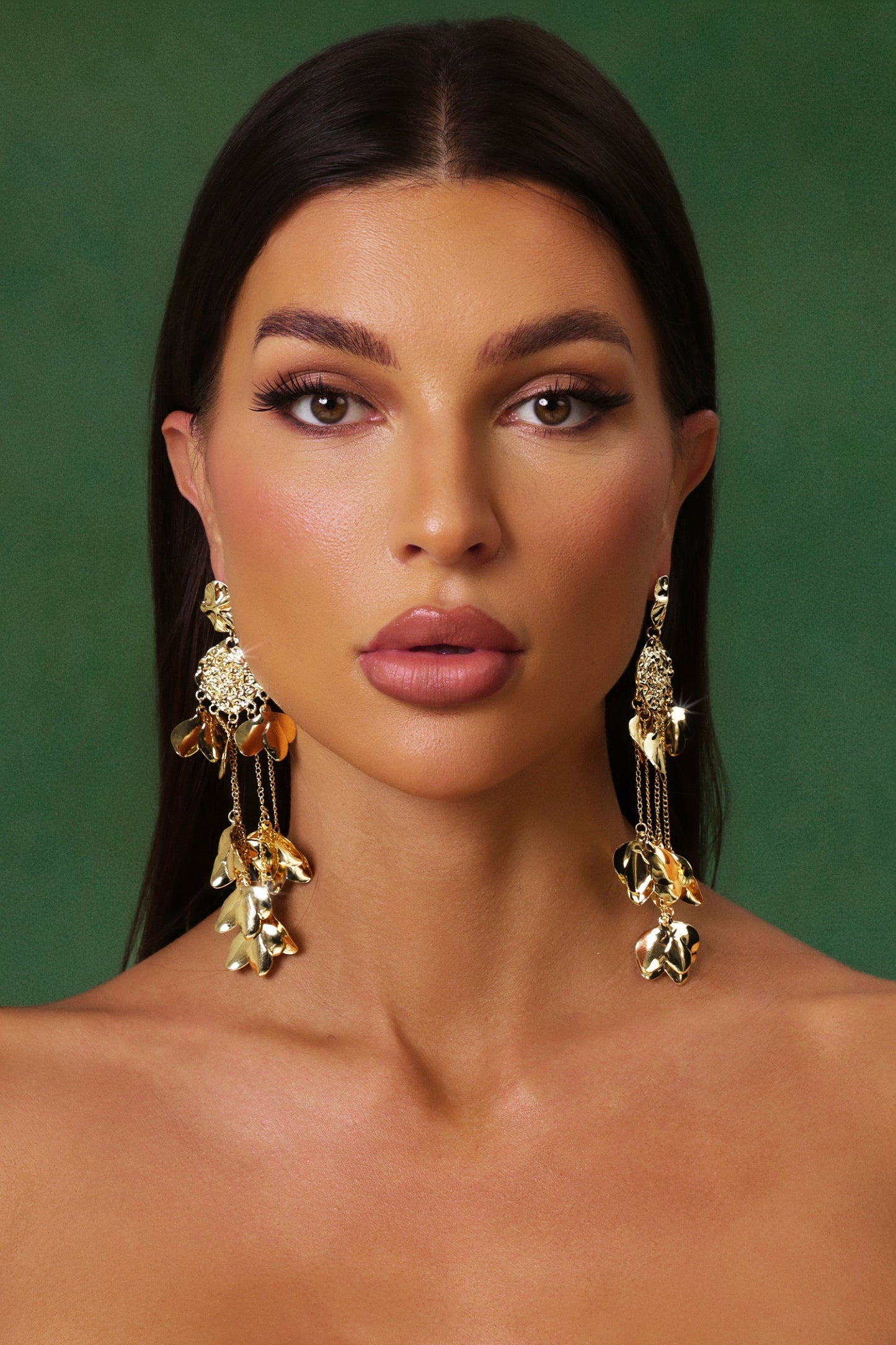 Nahla Püsküllü Çiçek Desenli Metal Küpe