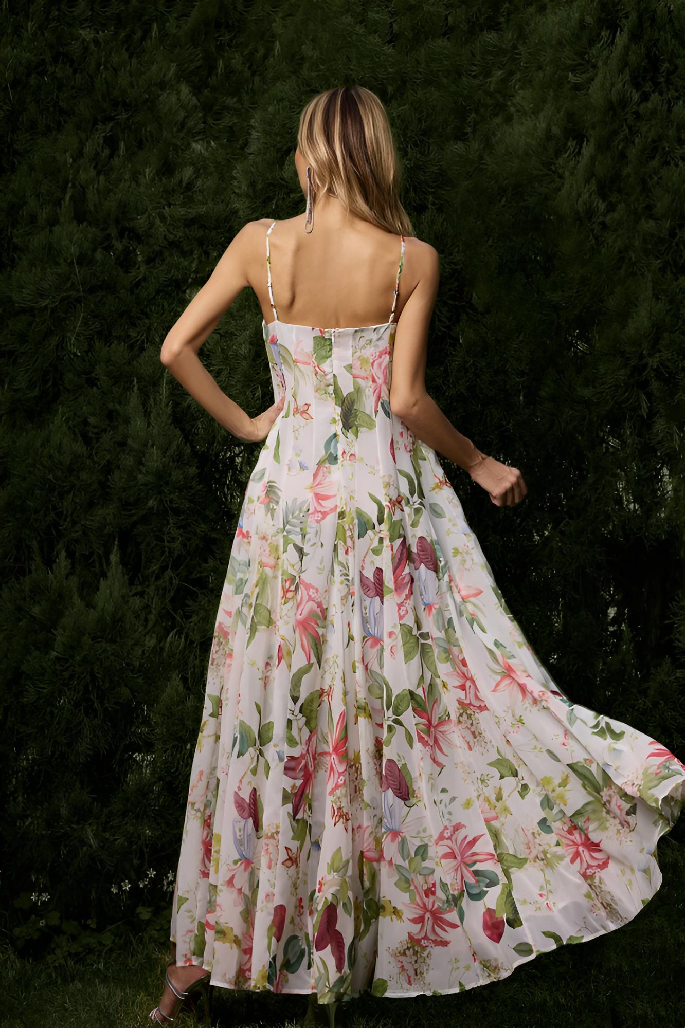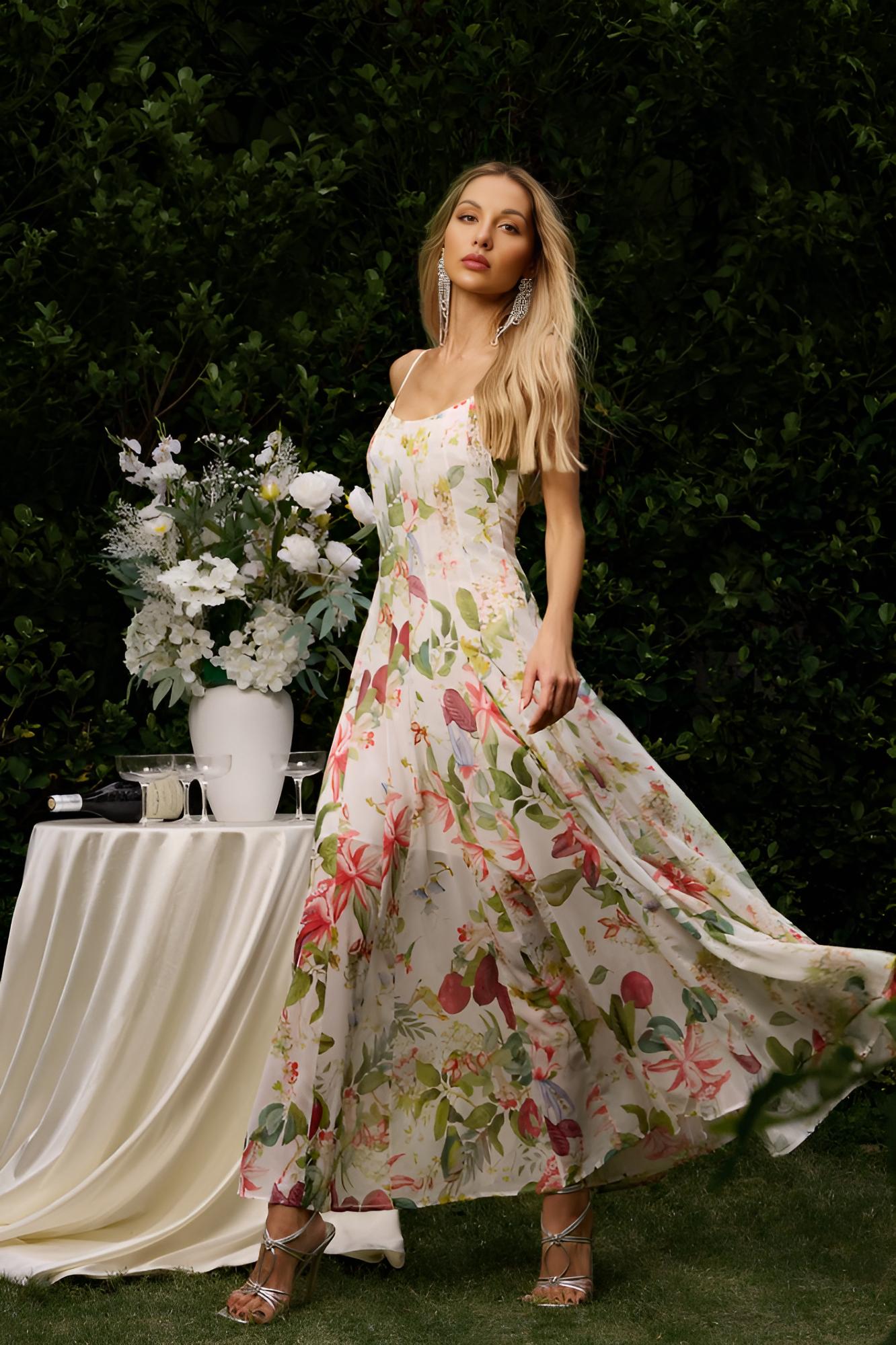Hayal gibi bir çiçek desenli maxi elbise… Zarif yuvarlak yaka kesimi ve ince spaghetti askılarıyla feminen bir duruş sunar. Hafif...