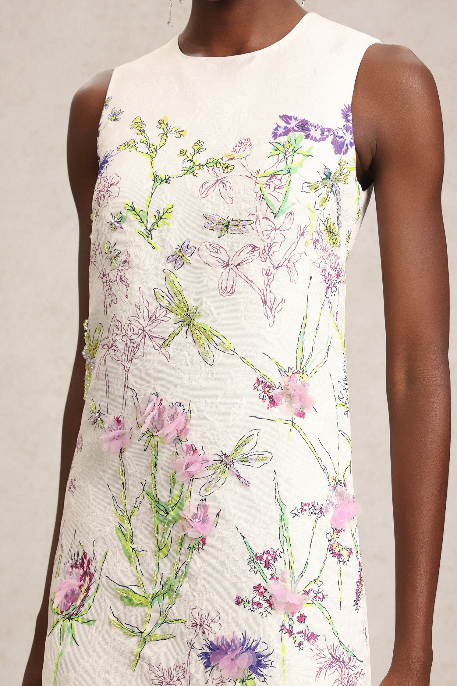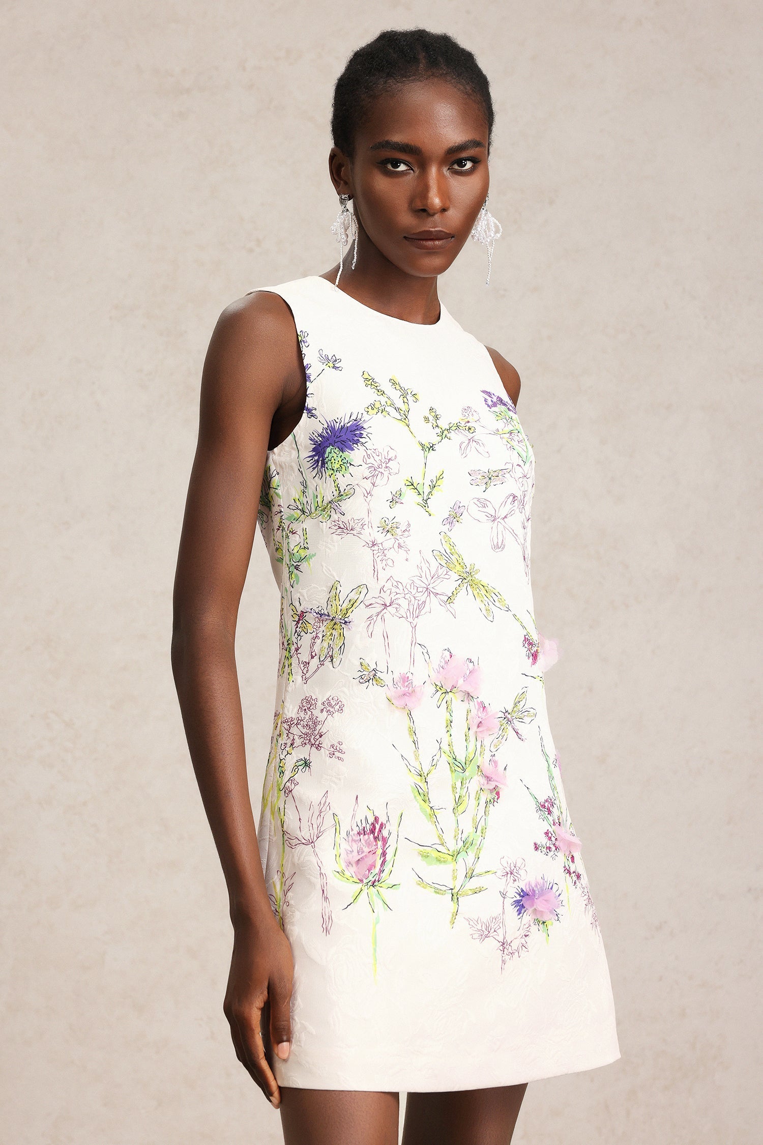 Zarif çok renkli çiçek işlemeleriyle süslenmiş bu beyaz mini elbise, genç ve taze bir görünüm sunarken aynı zamanda zahmetsiz bir...