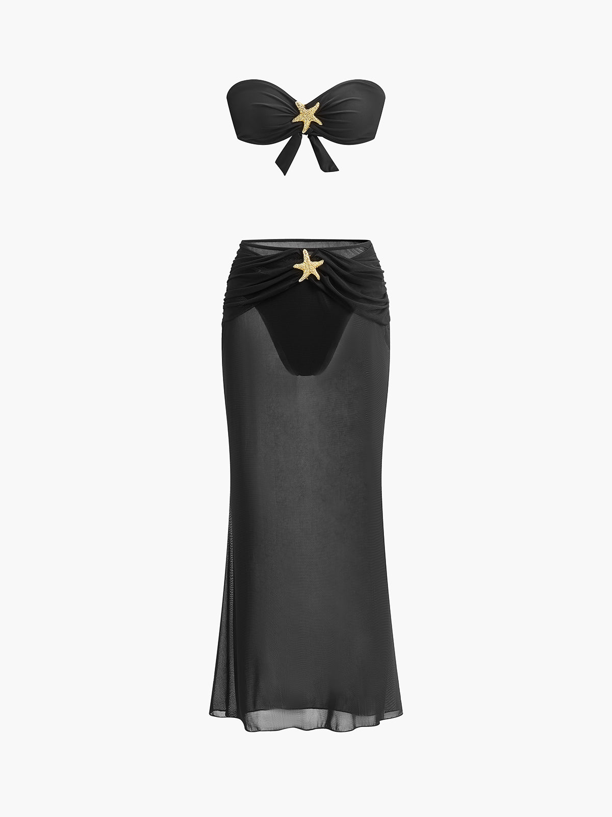 Deniz Yıldızı Detaylı Bandeau Bikini ve File Etek