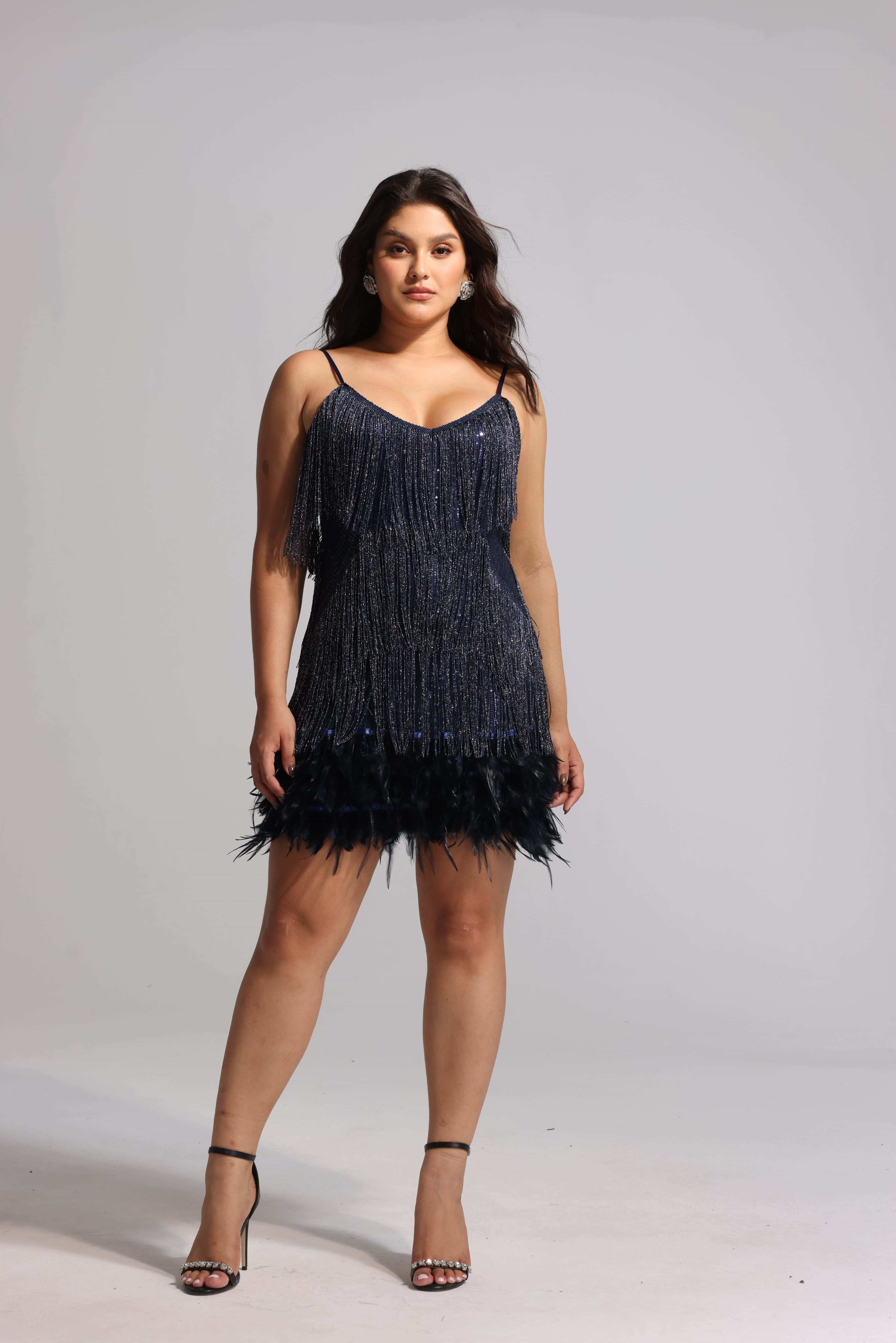 Gece şıklığını göz alıcı detaylarla buluşturan bu siyah mini elbise, modern ve iddialı bir stil sunuyor. Parıltılı payet işlemeleri, kat...