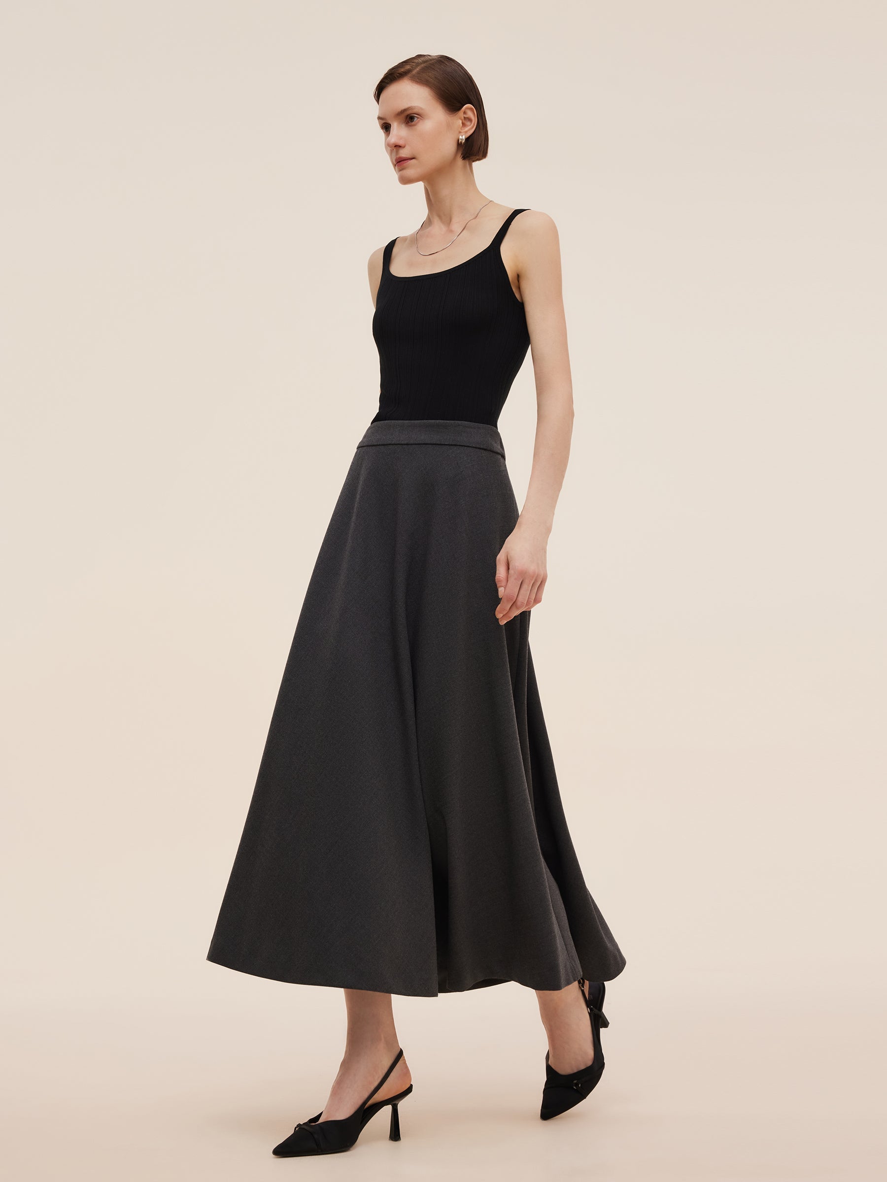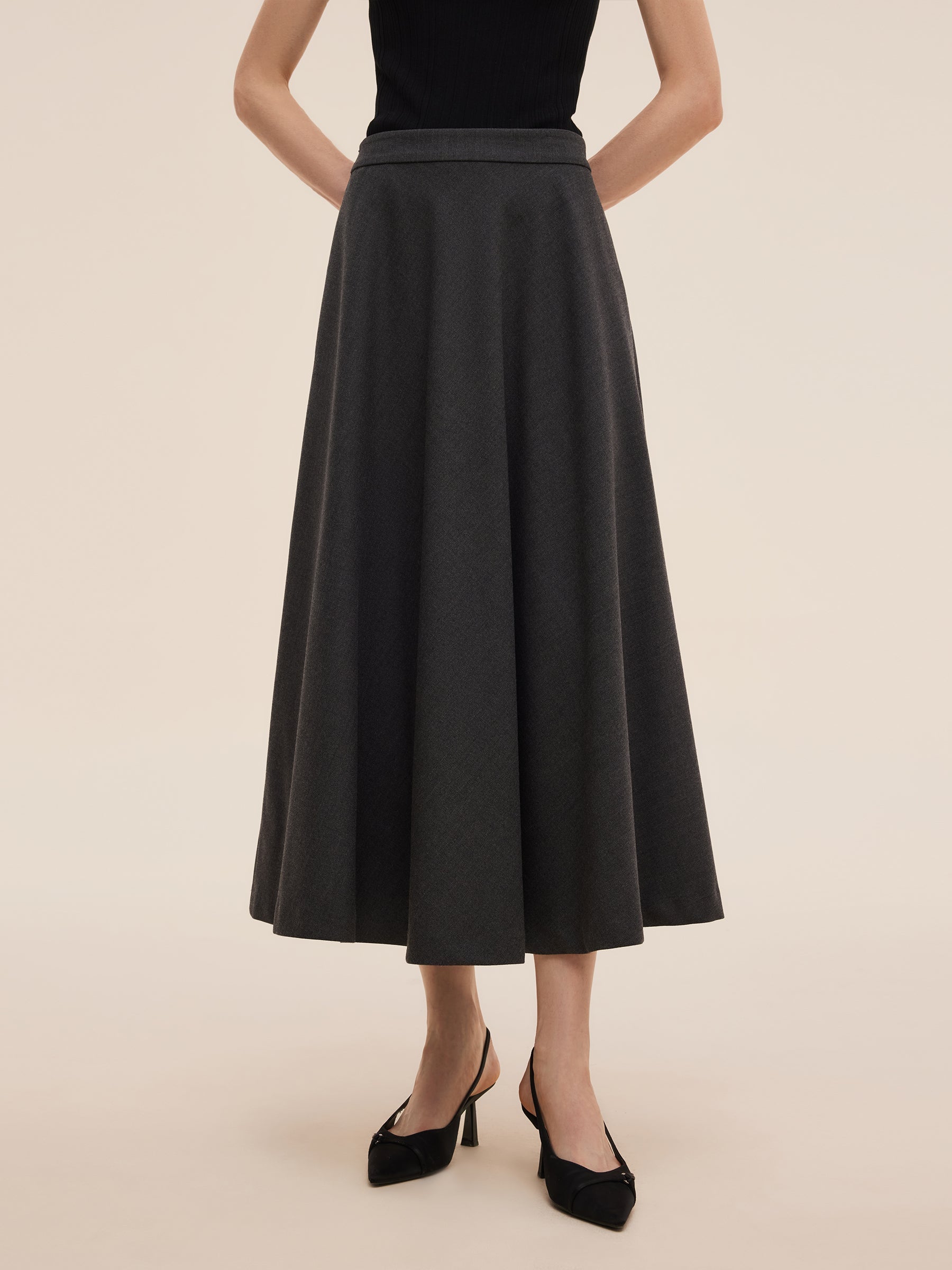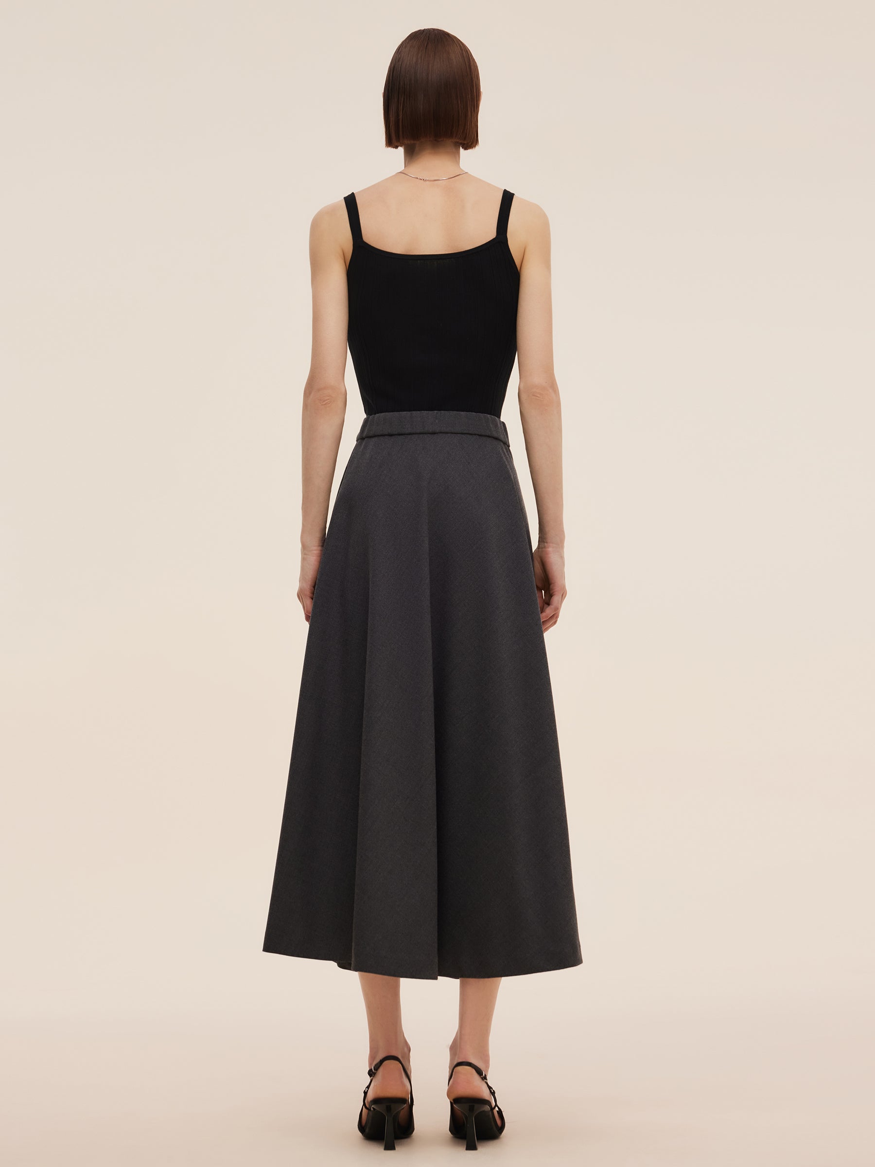 Taraklı yün karışımlı kumaş Cepli tasarım Arka kısımda lastikli bel Çok yönlü gri tonuyla sunulan bu etek, yumuşak dokulu, doğal...